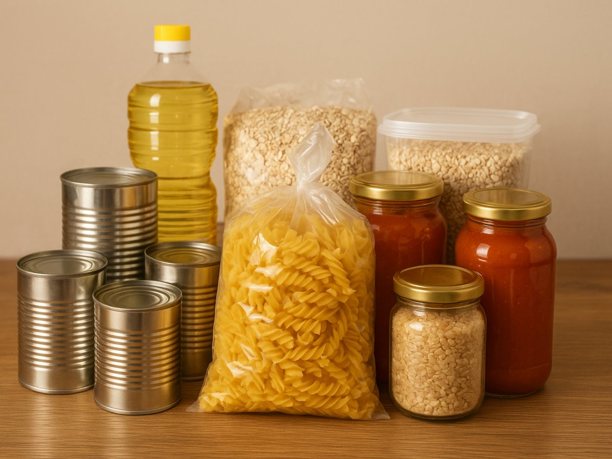 Die Klassiker sind heutzutage Nudeln, Getreide, Reis, Mehl, Dosenfrüchte, Fertiggerichte in Dosen, Zucker, Salz und co.