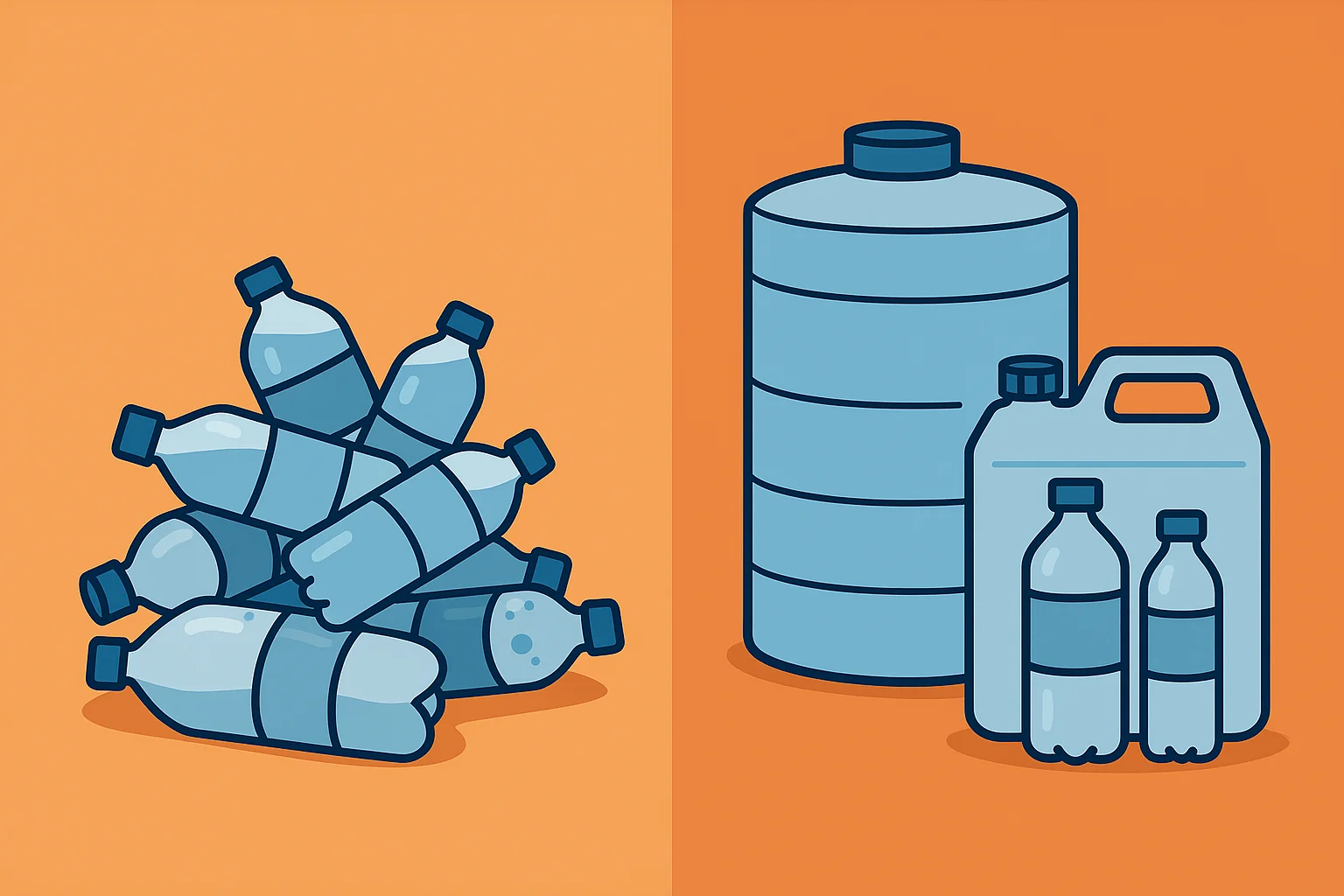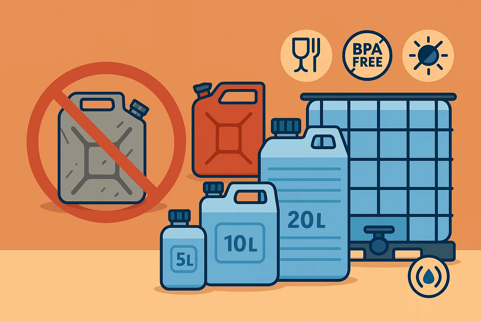 Wenn du dir die Behälter erst zulegen musst, nimm nur neue Kanister, Tonnen oder Tanks aus lebensmittelechtem, BPA-freiem HDPE-Kunststoff. Gebrauchte Behälter sind ein Risiko, weil du nie sicher weißt, was mal drin war.
