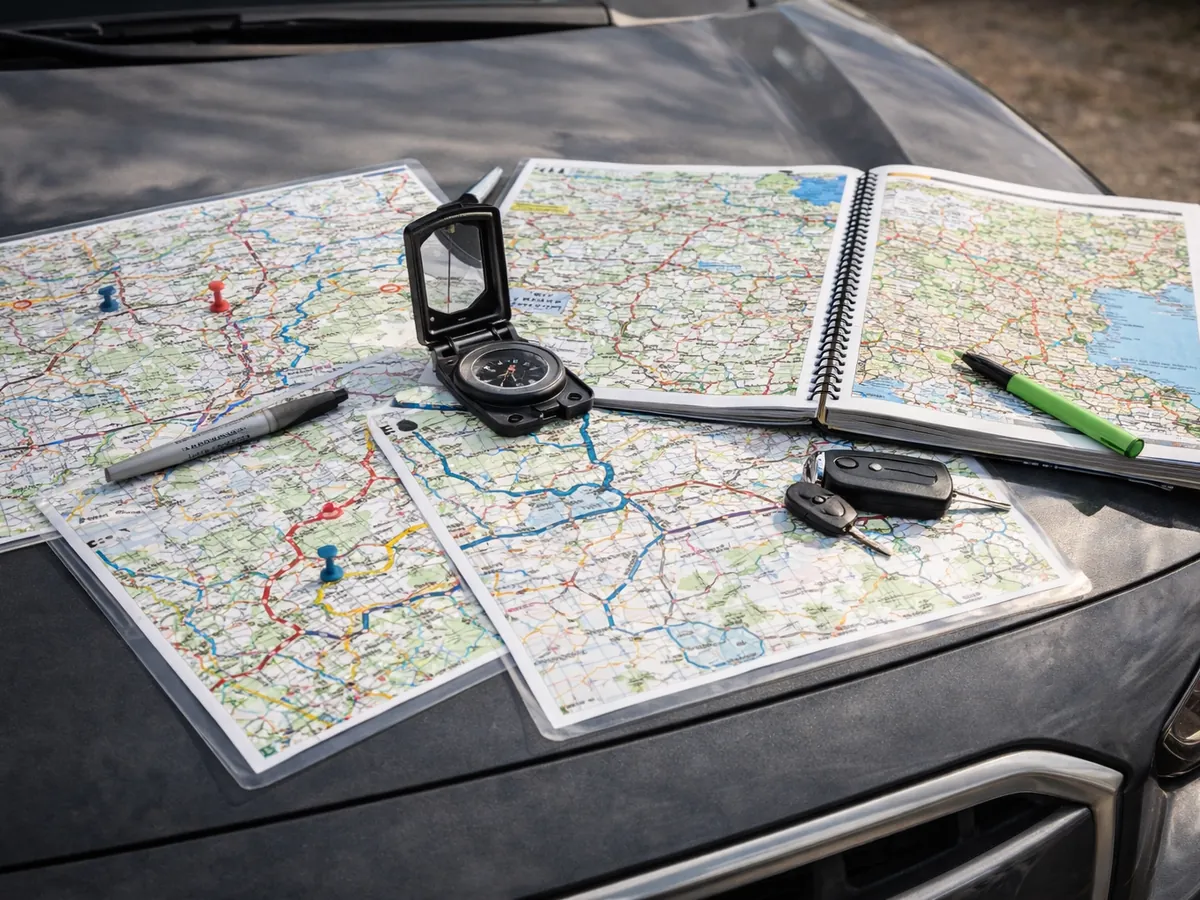Dabei ist es wichtig, dass die Karten deinen Hauptstandort, deinen Fluchtort und mehrere mögliche Routen und deren Umkreis abbilden. An etwa Autobahntankstellen oder Trafiken erhältst du häufig regionale Karten mit mehr Details.
