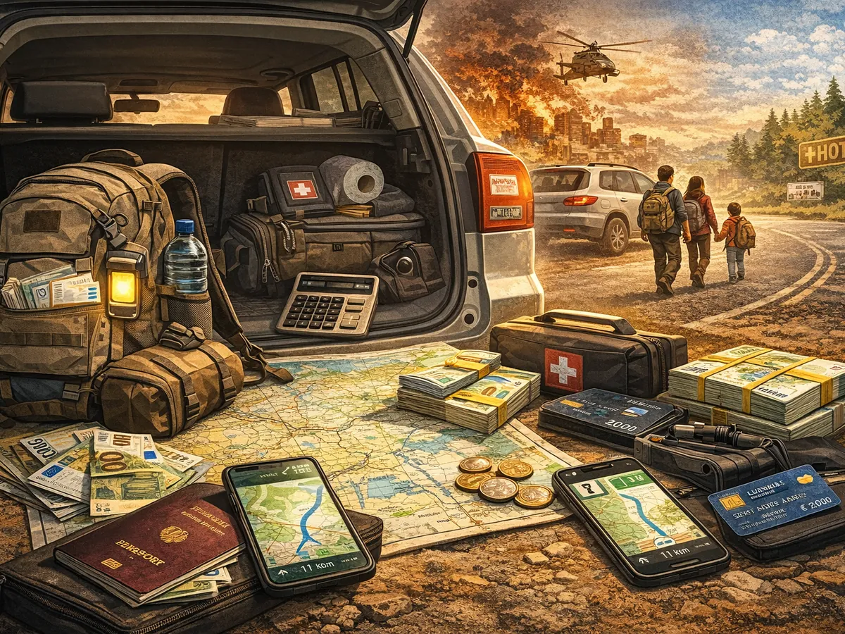 Genau dafür ist dieser Beitrag: ein Fluchtplan als System statt Gear-Shopping. Du gehst Schritt für Schritt von Minimum (7 Tage) über Standard (30 Tage) bis Upgrade (Monate) – mit klaren Prioritäten: Geldpuffer, Dokumente, Rucksäcke, fahrbereites Fahrzeug, Offline-Navigation und ein realistischer Zielort.