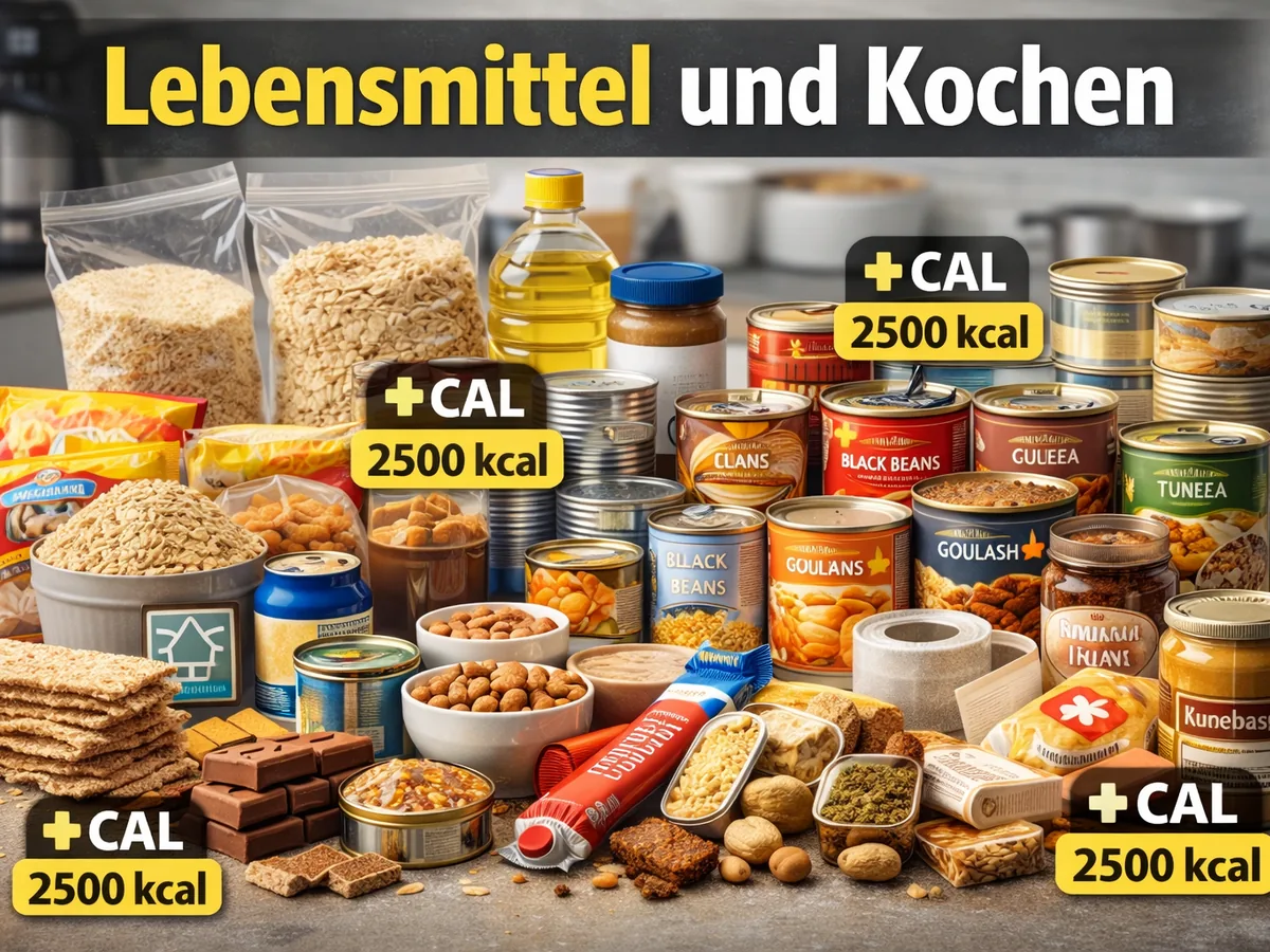 - Lebensmittelvorrat für 7 Tage. 17.500 kcal / Person (Haltbares und nur was schmeckt!)